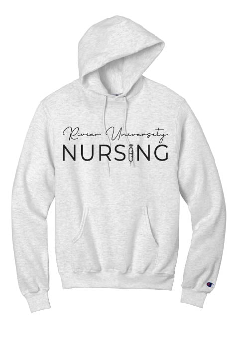 Price includes 1 color logo printed on center front in black. Garment is the silver grey color by Champion.