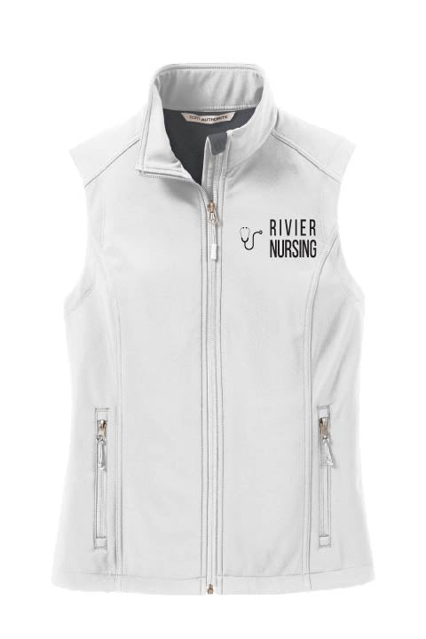 Item includes Rivier Nursing logo in BLACK thread to left chest.