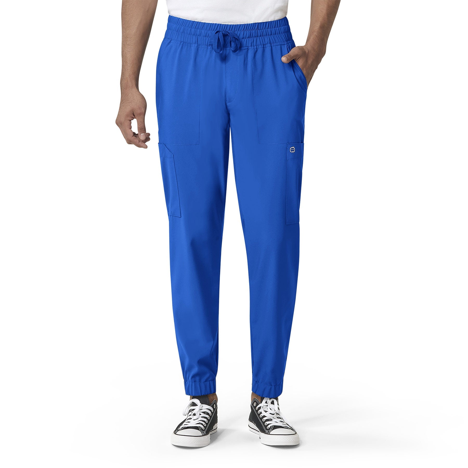 The Men's Cargo Jogger Scrub Pant from the W123 collection is made with a 100% microfiber poly 4-way stretch fabric that synchronizes with your every movement, quick-dry wicking technology to pull moisture away for fresh cool temperature-regulated comfort. These comfortable jogger scrub pants feature a full elastic waist with drawstring and zip fly for ease and function. The two front pockets, two stylized cargo pockets with cell phone pocket and pen slot, and two back pockets with hook and loop closure keep you organized but not overloaded. The elastic cuff scrub pants bring style and comfort to your full shift and beyond. Full elastic waist and full drawstring with zip fly |Two front slash pockets |Two stylized cargo pockets with cell phone pocket and pen slot |Two back pockets with pent slot and hook and loop closure |Slim leg jogger fit with elastic cuff at bottom hem |Inseam lengths: Regular 28 1/2", Tall 32" |Size M leg opening 5 3/4" |Mens Modern Fit