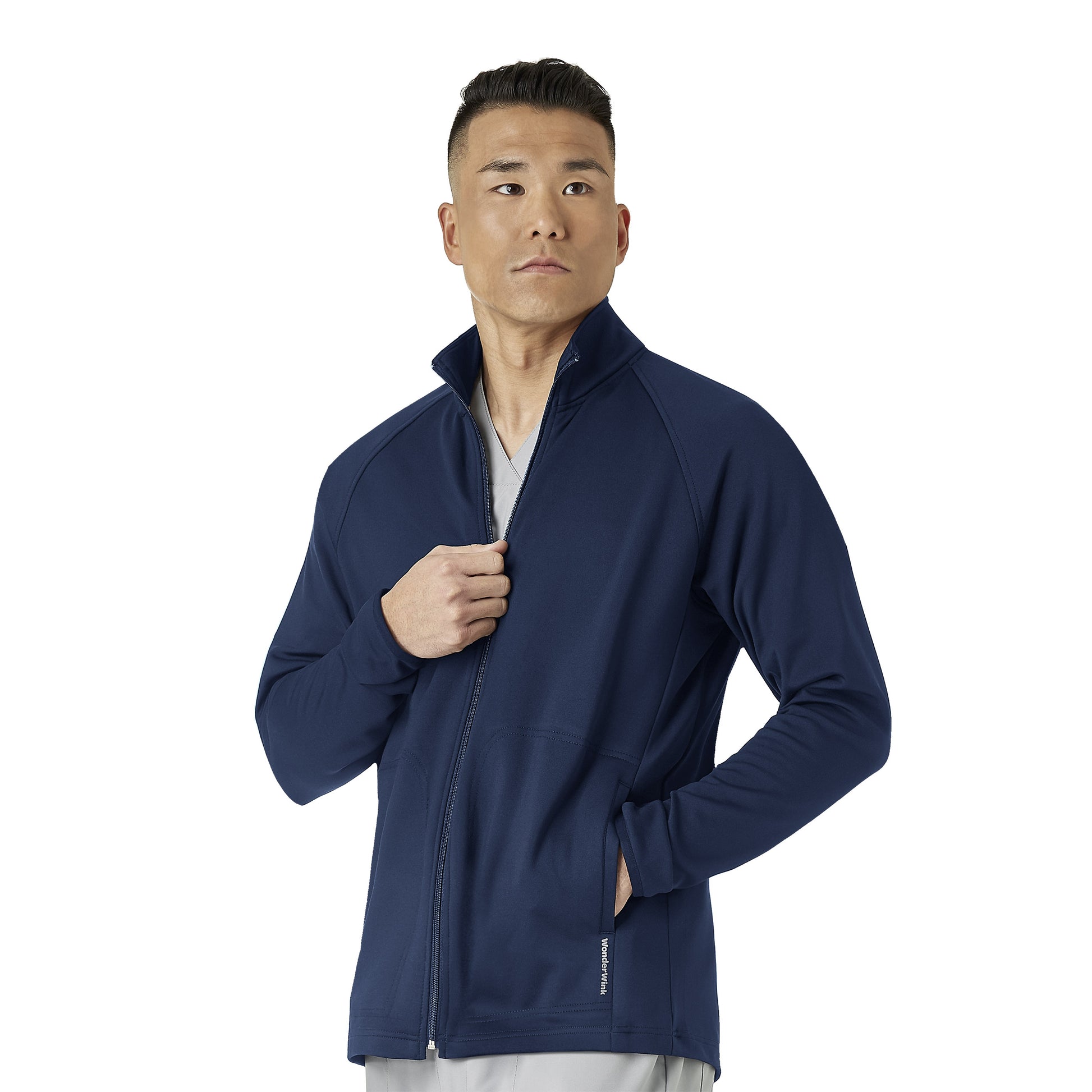 Whether your day involves a chilly morning commute or long hours in an air-conditioned lab, this men's fleece jacket keeps you warm and comfortable so you perform at your best. Cut for a streamlined look with flat seams, it layers smoothly over your scrubs. Roomy pockets inside and out make it easy to keep track of your phone, ID badge and other essentials. Plus, there's space for extra items like tissues and alcohol swabs that find their way into your pockets. This jacket is built to handle regular spins in the washing machine to help you stay poised, polished and professional. And because it fits neatly into your work locker or backpack, this jacket is always there when you need it.