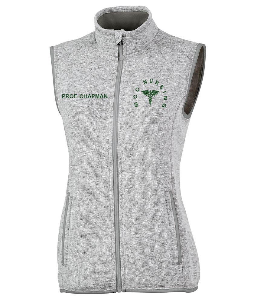 WOMEN'S HEATHERED FLEECE VEST W/ MCC Nursing Faculty Logo